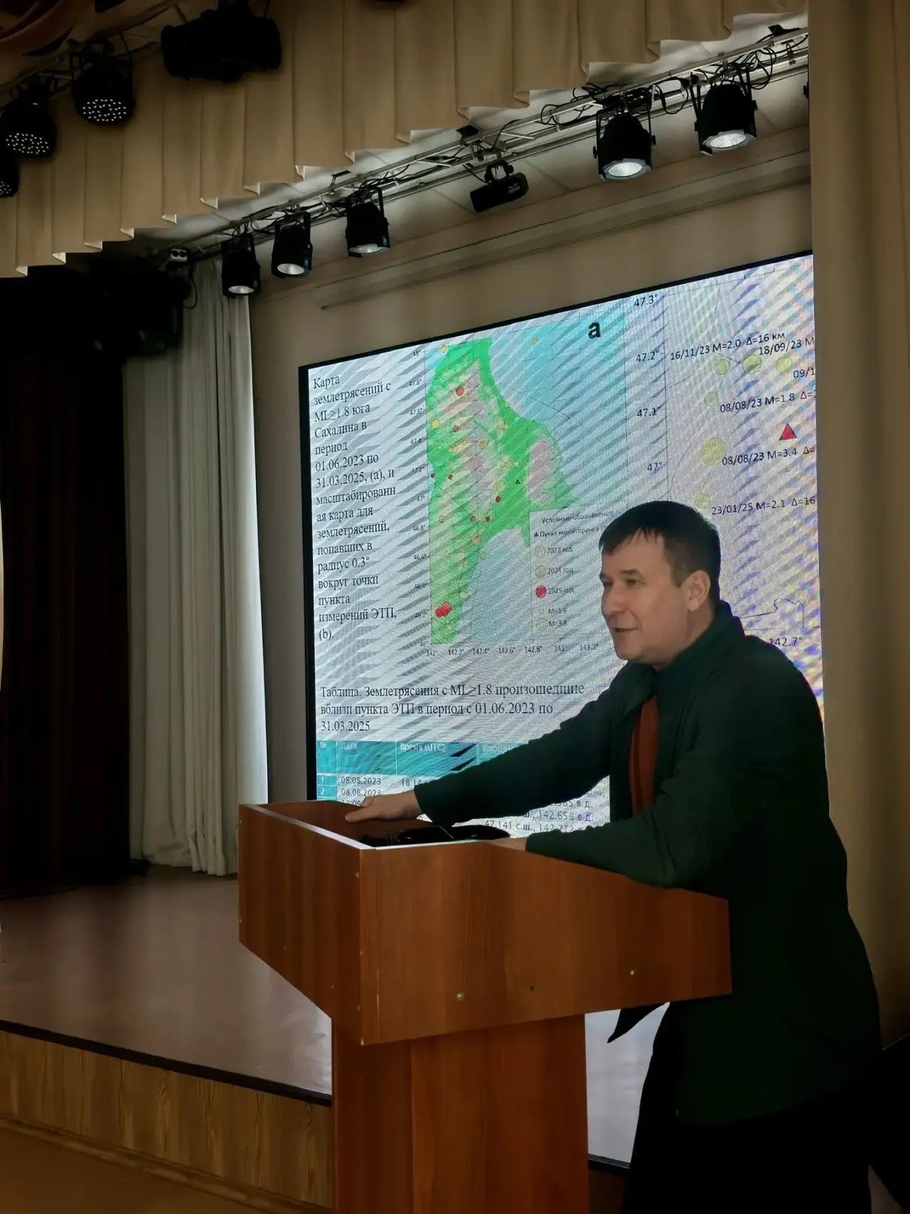 Закупин Александр Сергеевич провел лекцию для старшеклассников МАОУ «СОШ № 1» г. Корсаков по теме «Прогноз землетрясений – бой с тенью или есть в конце тоннеля свет?». Школьники узнали о прогнозах землетрясений, их видах и передовых методах, которые разработаны в ИМГиГ ДВО РАН - методе электротеллурических потенциалов (ЭТП) и load unload response ratio (LURR). Александр Сергеевич рассказал также о последних практических результатах сейсмологов Института в применении этих методов для прогноза землетрясений.