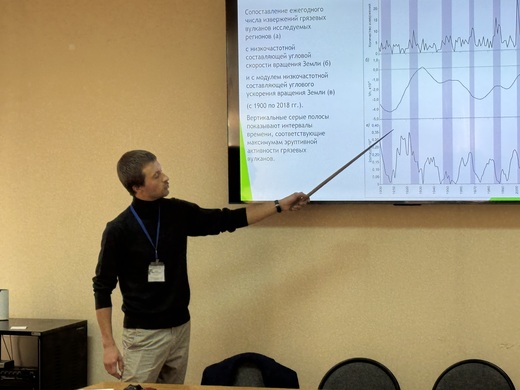 •Исследования Земли – ответ на вызовы природно-техногенных катастроф. Секция началась с лекции к.ф.-м.н. Ершова Валерия Валерьевича о комплексных исследованиях грязевых вулканов.
