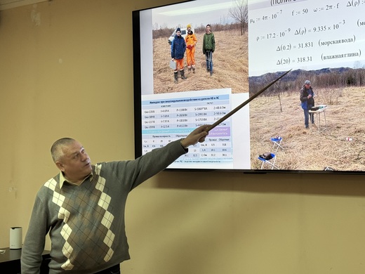 Рабочая часть продолжилась представлением промежуточных научных отчетов. Леонид Михайлович Богомолов доложил о результатах по теме государственного задания «Сейсмотектонические процессы и их проявления в вариациях геофизических полей в Сахалино-Курильском регионе».